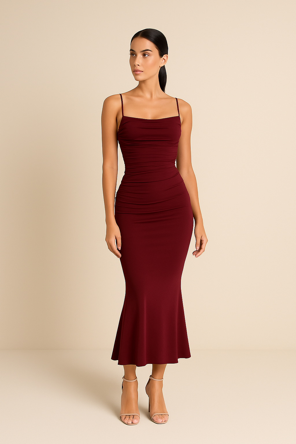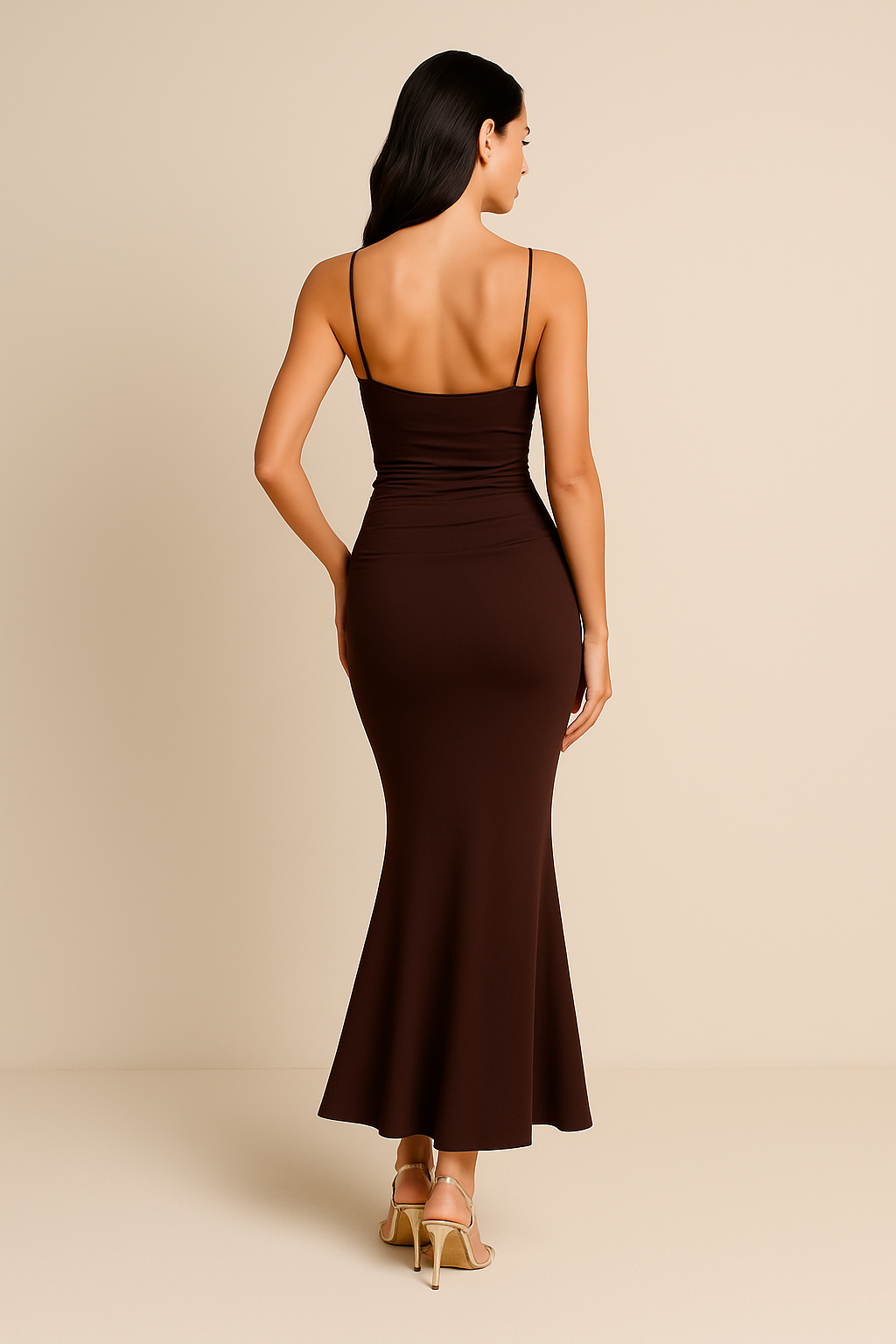 Suknia Valentina to elegancka kreacja wieczorowa z delikatnymi ramiączkami typu spaghetti i dopasowanym krojem bodycon.